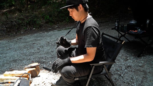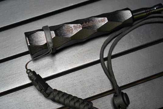 パラコードを編み込んだこだわりのネックストラップも付属でついているので、首から下げておけば焚き火のときにすぐに使えて、無くす心配も少ないです。