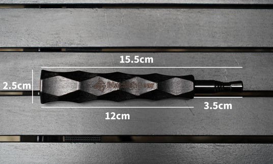 天然木を黒に染め上げた名栗加工グリップのデザインはブラックのスタイリッシュさとウッドの質感が共存したこだわりの火吹き棒。
