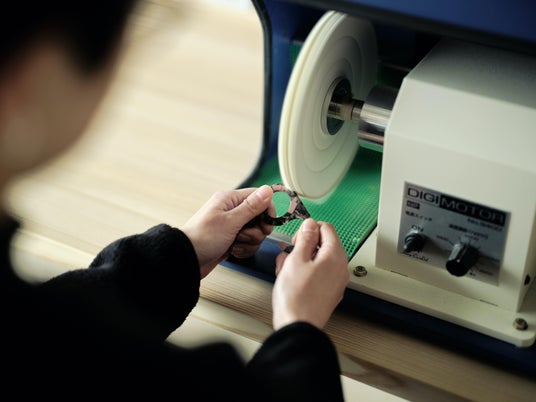 OPTIQ TAILORでは、ショッピングや工場見学に加え、アクセサリーや雑貨の磨き体験プログラムもお楽しみいただけます。製品を見るだけでなく、造り手の気持ちになり、ものづくりのプロセスを実際に感じることができるこのプログラムは、佐々木セルロイド工業所の真骨頂とも言える磨きの技術を堪能できるものです。製品の輝きを自分の手で引き立て、佐々木セルロイドの磨きの技術に触れる贅沢なひと時をOPTIQ TAILORでお過ごしください。
