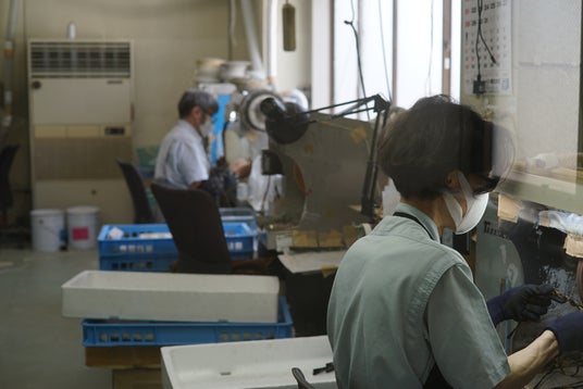 佐々木セルロイド工業所の磨き風景