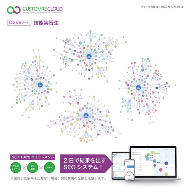 カスタマークラウド株式会社(本社:福岡県福岡市、代表取締役:木下寛士、英文:CUSTOMER CLOUD)は、2日で成果を出すSEO対策「SEO 100%コミットメント」にてリサーチを行ったSEO対策ワード「技能実習生」の分析レポートの一部を一般公開した。