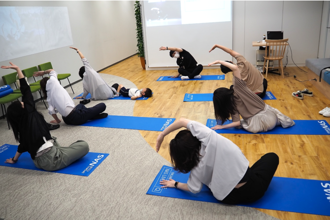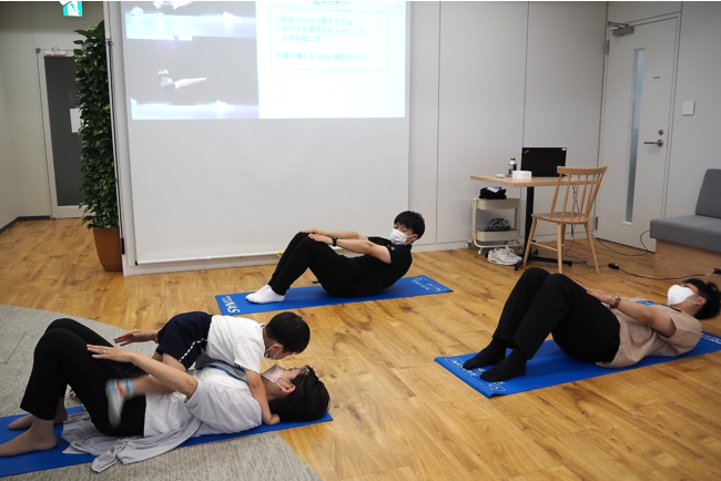 参加した社員からは、「これを機に運動習慣をつけていきたい」「身体や食事に関する質問にも答えていただき、とても参考になった」「次回の開催を楽しみにしている」など、前向きな声をいただきました。実施中は和やかなムードで、参加者からの質問も飛び交い、社員同士の交流も生まれた社内イベントとなりました。