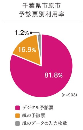 ◆「小児予防接種サービス」を全国で初めて導入した千葉県市原市では、導入済み医療機関で8割以上の保護者がデジタル予診票の利用を選択!