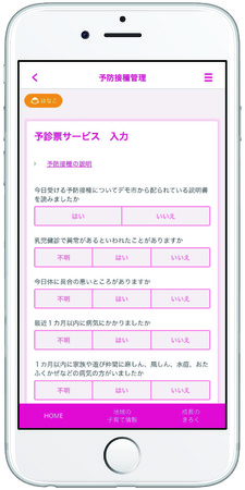 保護者には、スマートフォンで、接種スケジュールにあわせて『母子モ』からデジタル予診票の確認と入力を行い、接種に対する同意の自署の代わりに「同意して提出する」ボタンを押し、デジタル予診票を提出してもらいました。