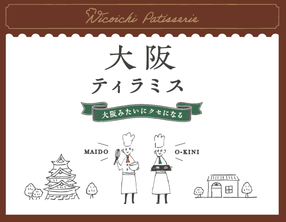 そんな大阪ティラミスは、にこいちパティスリー※の新商品。パティスリーの兄弟2人と飼い犬トッピンに