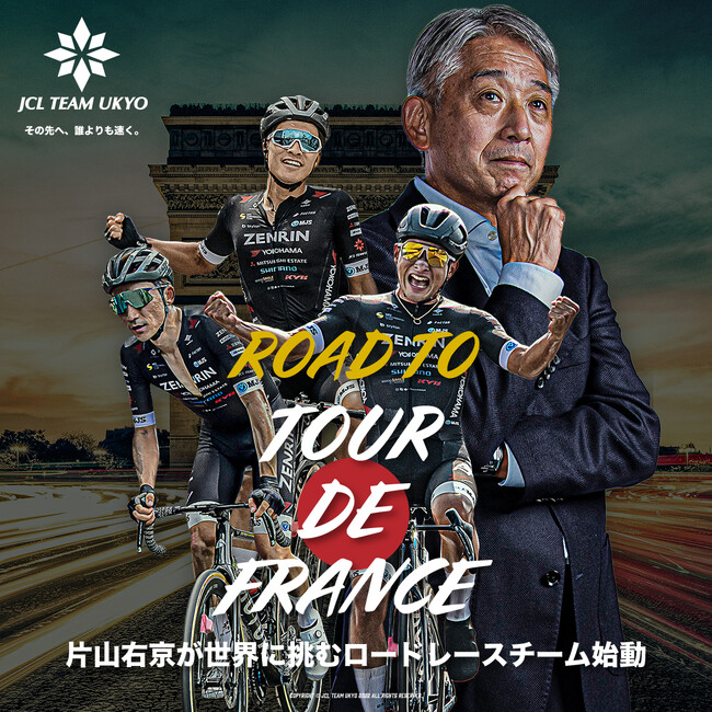 JCL TEAM UKYOは、2020東京オリンピック・パラリンピックで自転車全競技の運営責任者を務めた片山右京チーム代表が率いる「日本国籍チームとして史上初のツール・ド・フランス出場、そして表彰台に登ること」を目標に日本トップクラスの選手が集結して2023年に発足した自転車ロードレースチームです。