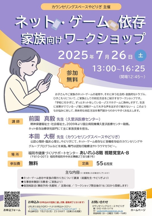 7月26日に開催する「ネット・ゲーム依存 家族向けワークショップ」の案内です