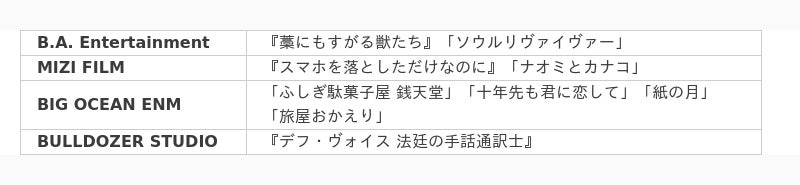 参加予定の韓国映像制作会社と日本の原作・IP映像化実績