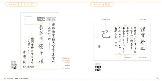 ひらがな・カタカナ・漢字のコツはもちろん、宛名・一筆箋・履歴書など、実例集も充実