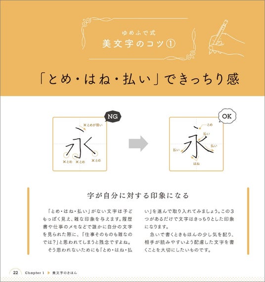 そんなとき、美文字を書けると「丁寧な人」や「ちゃんとした人」など、自分への印象をアップさせることができます。プライベートでもビジネスでも「手書き文字」は人から見られる大事な要素といえます。