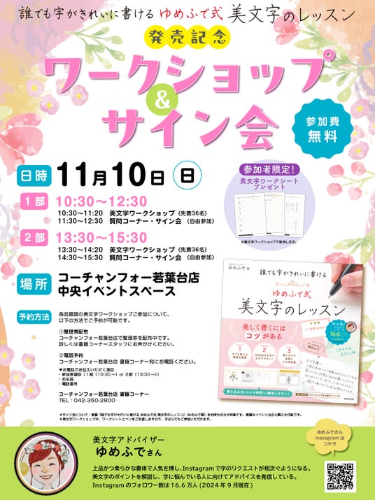 書籍の発売を記念して、コーチャンフォー 若葉台店にてワークショップイベントを行うことが決定しました。