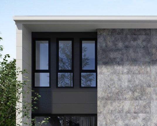 深い軒の水平ラインと袖壁でつくる奥行のある立体感。デザインウォールが重厚感を演出するデザイン。これらをシリーズ共通のデザインアイコンとして採用しています。