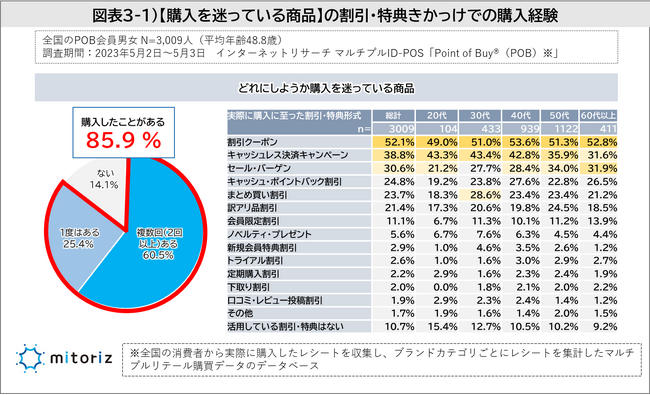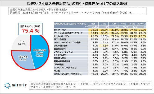 株式会社mitoriz(本社:東京都港区、代表取締役社長:木名瀬博)は、消費者購買行動データサービス「Point of Buy(R)(以下、POB)」の会員3,009人に「お得な買い物に関する調査」を実施致しました。