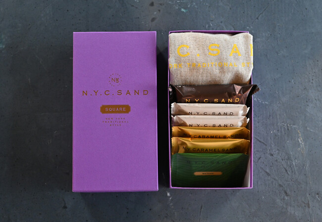 N.Y.C.SANDとは世界中のヒト、モノ、食、文化…すべてがギュッと凝縮された街・ニューヨークの伝統と最新を併せもつ表情豊かなお菓子たちの感動そのままに、<N.Y.C.SAND>スタイルにアレンジしてお届けします。