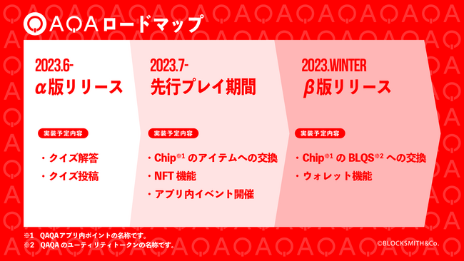 株式会社BLOCKSMITH&Co. (本社:東京都港区、代表取締役社長CEO 真田 哲弥、以下「BLOCKSMITH」)は、α版先行プレイ配信中の縦型ショート動画クイズアプリ『QAQA(カカ)』に、企業5社(INN、Oasys Pte. Ltd.、大阪ラヴィッツ、JTB、Metaani ※50音順)が、ユーザー発のクイズ投稿を活用した企業とファンの距離を近づけるファンリレーションマーケティングを目的として参画することをお知らせいたします。