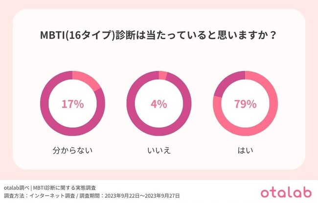 MBTI診断の結果が当たっていると感じている人は『約8割』