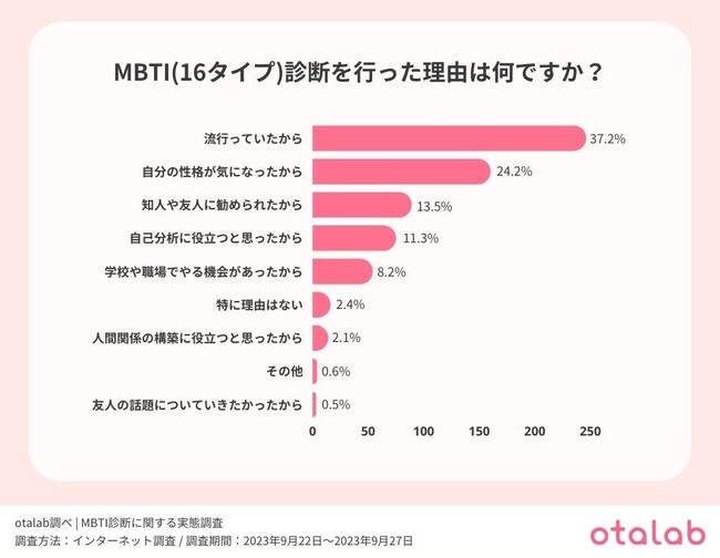 やはり、Z世代の中でMBTI診断が非常に流行っているため、その流れに乗って診断をしたという人はかなり多いようだ。