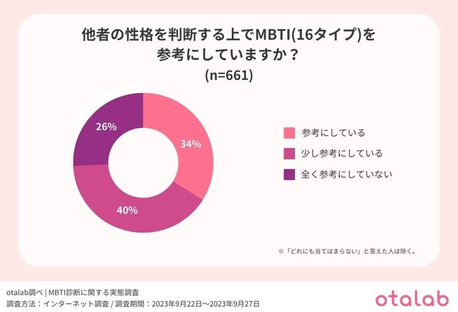 ・他者の性格を判断するうえでMBTI診断を参考にしている人は『7割以上』