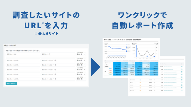 「競合サイト比較」機能は、市場での競争力向上に欠かせない「競合サイトのデータ分析」をより効率的に行い、自社の状況をわかりやすく可視化します。