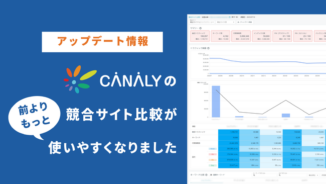 株式会社グランネット(本社:大阪府大阪市、代表取締役:山本 真俊)は、2023年7月10日にSEO分析ツール「CANALY」の「競合サイト比較」機能を大幅に強化いたしました。