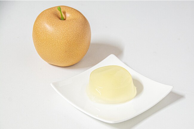 川崎市産の多摩川梨のコンポートとピューレをたっぷりと配合した川崎ならではの夏のゼリーです。