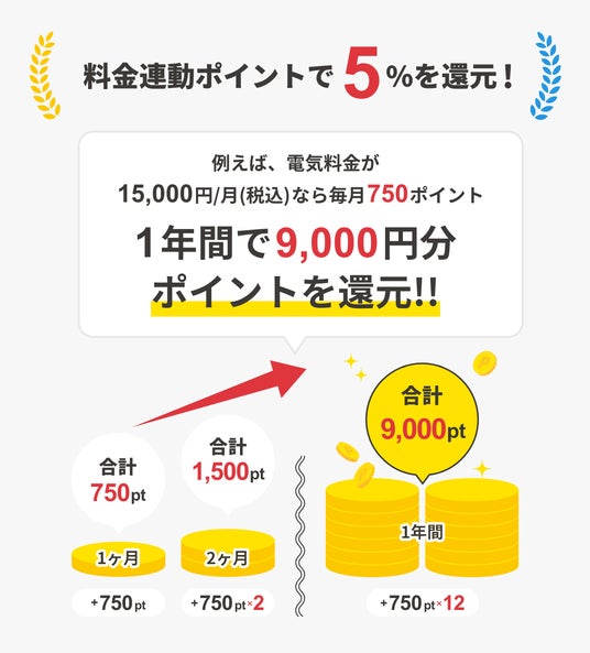 ※2:ポイント還元は、当社の家庭向けWEB会員サービス「カテエネ」に会員登録し、電気の契約情報を登録する必要あります。還元されるポイントは「カテエネポイント」です。ポイントの対象となる料金は、再生可能エネルギー発電促進賦課金を除きます。また、セット割引の適用を受ける場合は、割引後の料金から算定します。