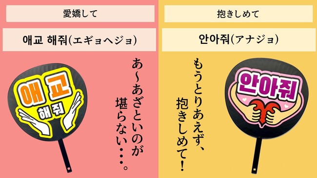 商品名:ずぼらうちわハングルVer.(全4種:抱きしめて/愛嬌して/投げキスして/~おめでとう)