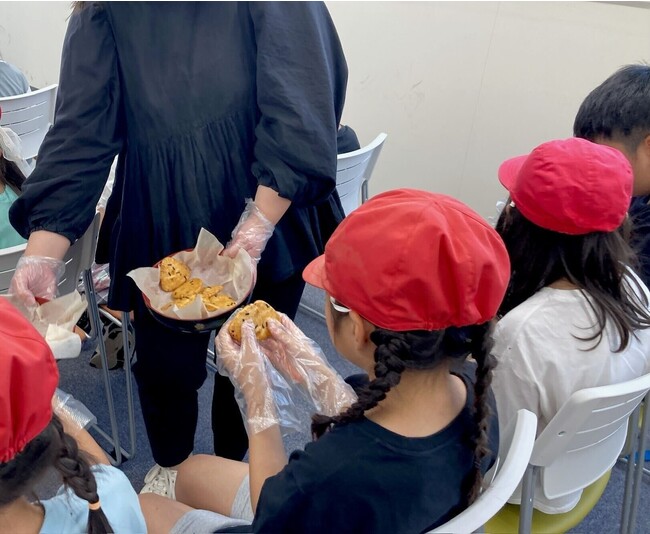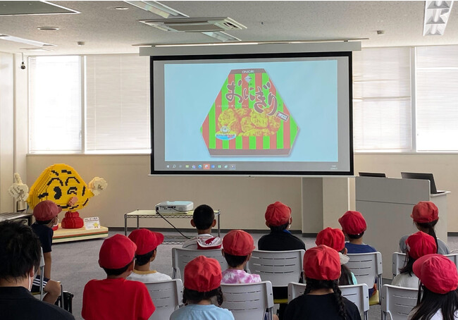 DVDを見てお腹がへった所で、1人2枚ずつ「おにぎりせんべい」を試食していただきました。実はこの「おにぎりせんべい」はここでしか食べられない特別な「おにぎりせんべい」!その秘密は、なんと…1時間前に出来たばかりの超出来立ての「おにぎりせんべい」なんです。早速食べてみると「いつもよりサクサクする!」「味が濃くておいしい!」と大好評でした。