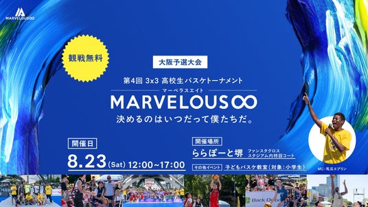 Back Dooor株式会社(代表取締役:馬瓜エブリン、名古屋市昭和区)は、2025年8月23日(土)にららぽーと堺にて開催された「第4回 3×3 MARVELOUS∞ 大阪予選大会」の結果をお知らせいたします。高校生による3人制バスケットボール・トーナメントとして、男子・女子両カテゴリで接戦が繰り広げられ、見事勝利を収めた男女各1チームが、9月15日(月・祝)に名古屋・久屋大通パークで開催される決勝大会へ進出することが決定しました。