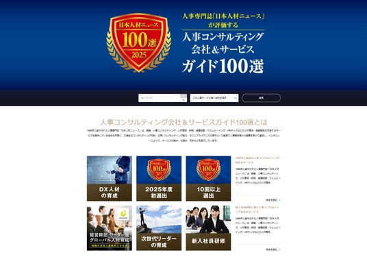 人事専門誌「日本人材ニュース」を発行する株式会社日本人材ニュース社(東京都千代田区、代表取締役:吉越利成)は、企業の人材育成・組織開発を十分に支援できるコンサルティング会社とサービスを紹介する「人事コンサルティング会社&サービスガイド100選 2025年度版」特設サイトを公開しました。