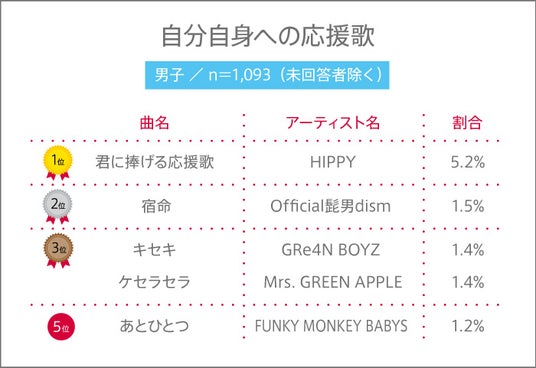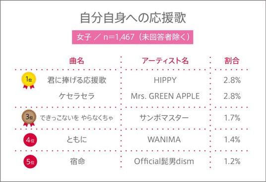 “令和の応援ソング”が男女共通の1位にランクイン!