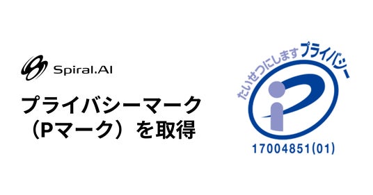 大規模言語モデル等の生成系AI技術を用いたサービスの開発を行うSpiral.AI株式会社(本社:東京都千代田区、以下「SpiralAI」)は、一般社団法人日本情報システム・ユーザー協会より「プライバシーマーク(Pマーク)」の認定を受けたことをお知らせいたします。