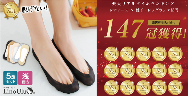 株式会社MiRii MeRii(ミリーメリー) が運営する「Lino Ulu (リノウル) 楽天市場店」は、楽天リアルタイムランキング1位140冠(靴下・レッグウェア部門)を達成いたしました。