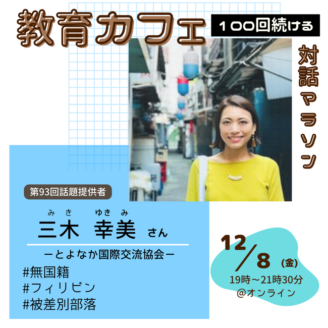 第93回 教育カフェ~100回つづける対話マラソン~ 話題提供者:三木 幸美さん (とよなか国際交流協会)