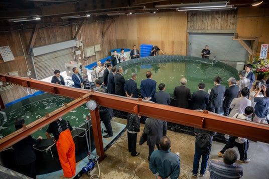 今回、「極寒ぶり(TM)︎」の価値をさらに高めるため、生食が可能な鮮度を長期間維持する新たな技術を導入しました。新設した専用施設「鮮度保持水槽施設」では、9月から実証試験を開始し、2024年9月18日(水)に棚野町長や地元関係者など、約30名が参加する内覧会と試食会が開かれました。