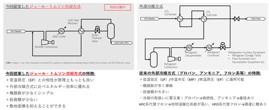 (注3)本プロセスで採用されたジュール・トムソン冷却(Isenthalpic expansion cooling & liquefaction)方式は、回収したCO2を減圧することで生じる温度低下を活用し、船舶輸送に適する液化CO2を形成します。
