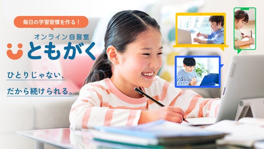 4月にサービスを開始したオンライン自習室『ともがく』は、塾や図書館での学習環境をご家庭で再現するオンライン自習室です。毎日同じ時間に、全国の仲間と“ともに学ぶ”ことで、お子さまのやる気を引き出し、毎日の学習習慣化を実現します。
