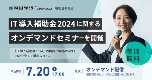 株式会社内田洋行ITソリューションズ(本社:東京都江東区、代表取締役社長:新家 俊英、以下 ITS)は、経済産業省 中小企業庁が管轄する「IT導入補助金」の活用を検討している方に向けたオンデマンドセミナーを開催することをお知らせします。