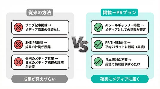 本プランは、AIツールギャラリーへの掲載とPR TIMES配信を組み合わせた、海外AI企業向けのPRサービスです。