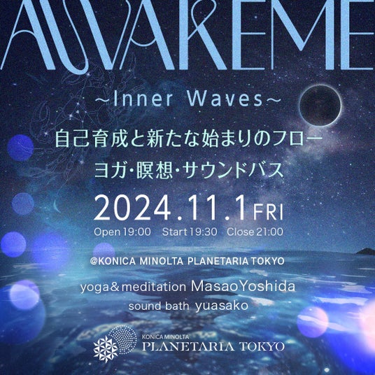 「コニカミノルタプラネタリアTOKYO」(東京・有楽町/運営:コニカミノルタプラネタリウム株式会社/代表取締役社長:本由美子)では2024年11月1日(金)新月の夜に、ウェルネスイベント『AWAKEME ~Inner Waves~ 自己育成と新たな始まりのフロー』を開催します。