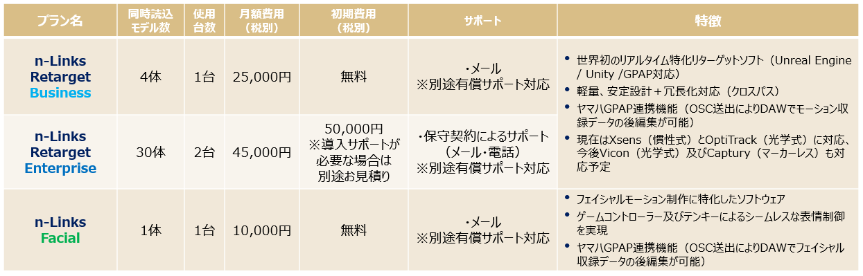 フェイシャル(表情)モーション制作に特化したソフトウェア『n-Links Facial』をご利用いただけるプランです。
