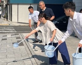 今後は、地域の学生や子どもたちにも気軽に参加してもらいながら、少しずつ地域全体にも広がっていくことを願っています。打ち水をきっかけに、水資源の大切さや環境への関心を地域の皆さまと一緒に考え、世代や立場をこえた交流が自然に生まれるような、そんな温かい輪が広がることに貢献できれば、と考えております。