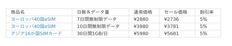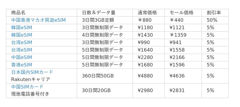 期間限定でeSIM/SIMカードを最大50%OFFで販売