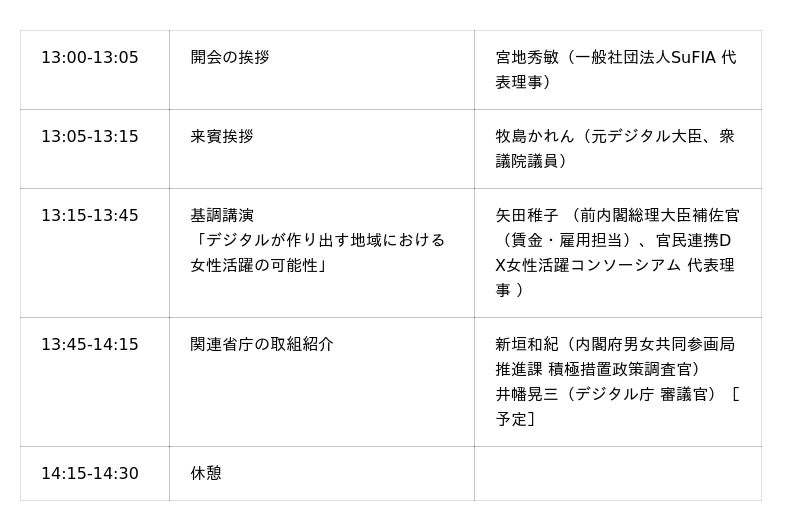 地域におけるデジタル人材育成の取組みや課題について、関連省庁や女性活躍を推進する企業の皆さまにご登壇いただき、現場での実践事例や直面する課題、今後の展望について共有いただきます。多様な視点からの議論を通じて、地域に根ざした持続可能な人材育成のあり方を探ります。