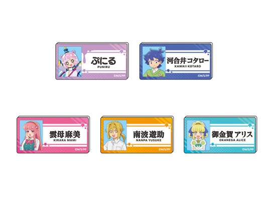 ぷにる、河合井コタロー、雲母麻美、南波遊助、御金賀アリスの全5種。オープン販売なのでお好きなキャラクターの絵柄をご購入いただけます。