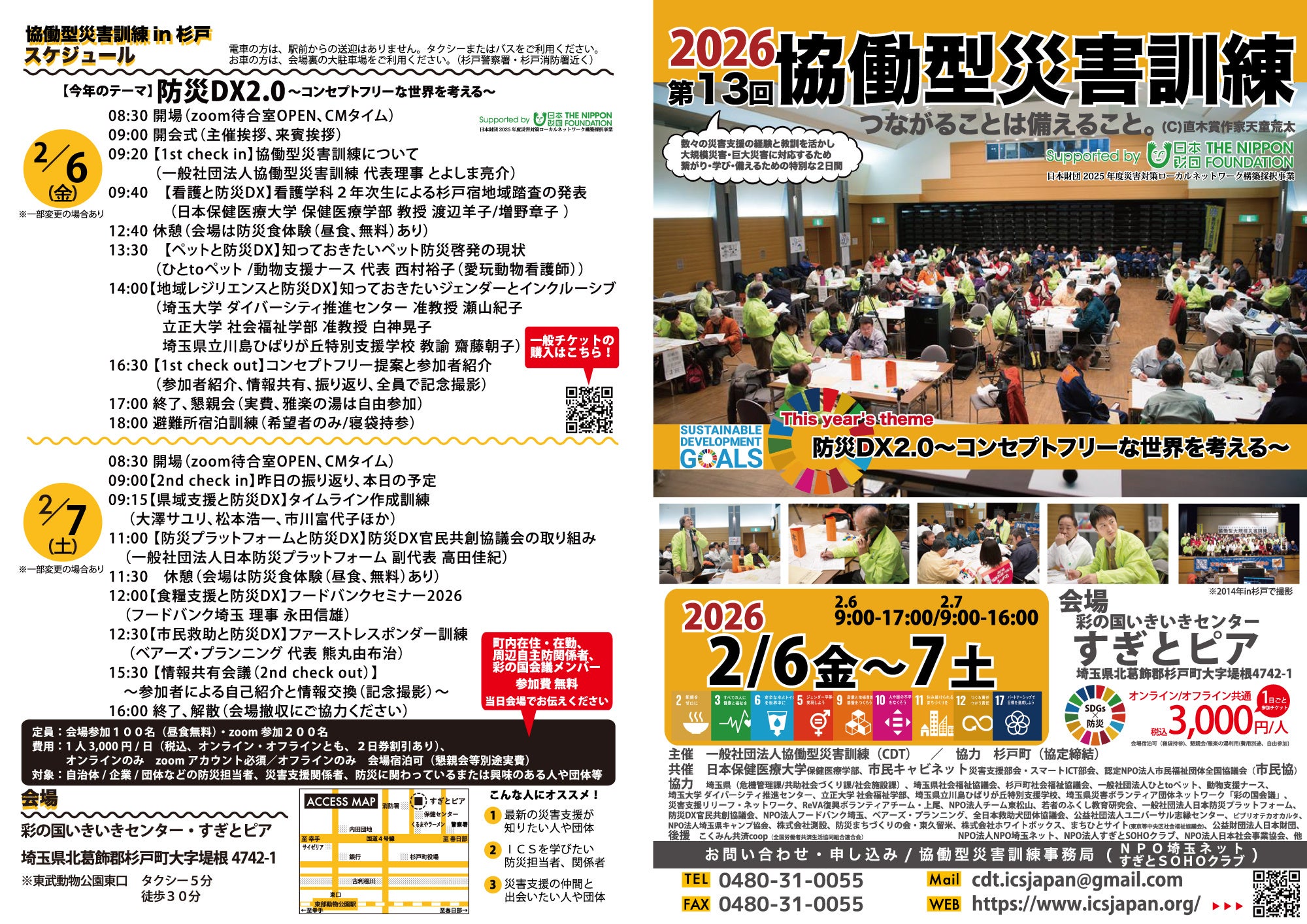 特定非営利活動法人日本社会福祉事業協会は、2月6~7日の日程で開催する「第13回協働型災害訓練 in 杉戸「防災DX2.0~コンセプトフリーな世界を考える~」にて運営サポートを行います。