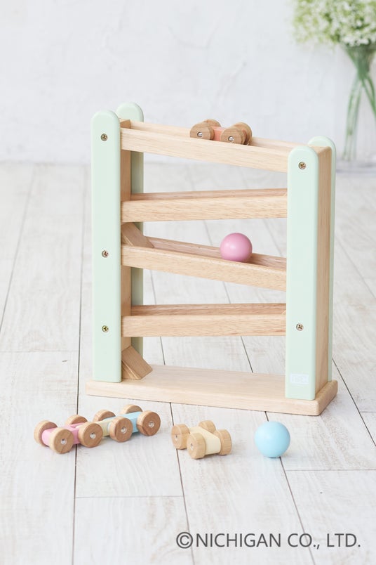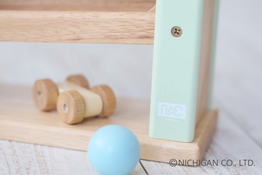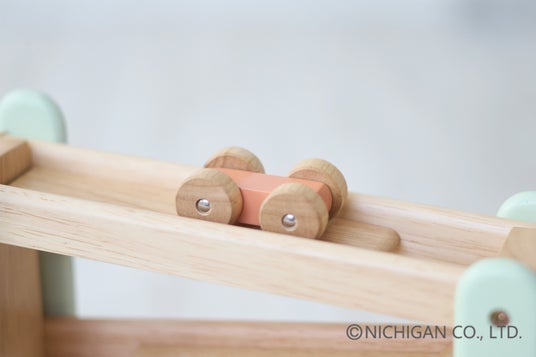 ★ニチガンのロゴ日本で最も長い歴史を持つ木のおもちゃメーカー、株式会社ニチガンのロゴが、スロープの柱にあしらわれています。1929年の創業以来、子どもたちの笑顔と想像力を育んできたニチガンの伝統と品質が、このロゴに込められています。