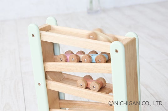 車やボールがスロープを滑り落ちる際に木の優しい音と個性的なリズムを生み出す点が特徴で、お子さまの聴覚を刺激し、遊びを通して音の違いやリズム感の発達を促します。また、天然木の温かみを感じさせる優しいデザインは、お子様が安心して遊べるだけでなく、リビングなどの空間に置いても自然に馴染み、インテリアのアクセントとしてもご活用いただけます。