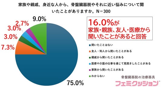 身近な人から骨盤臓器脱について聞いたことがあると回答は16%(フェミクッション調べ)