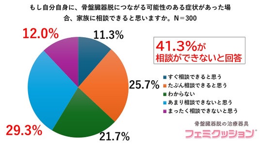 骨盤臓器脱のような症状があっても人に相談できないと回答が4割を超えた(フェミクッション調べ)